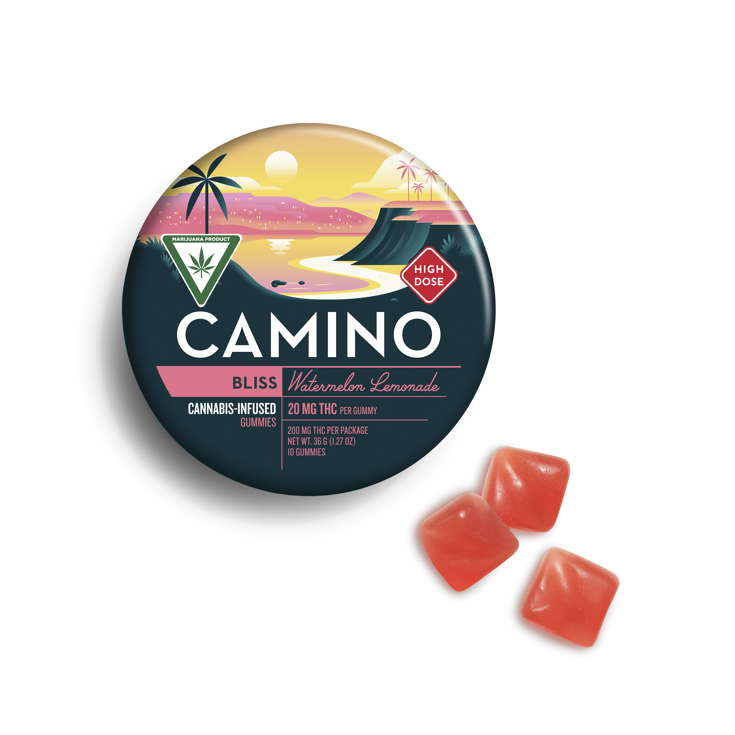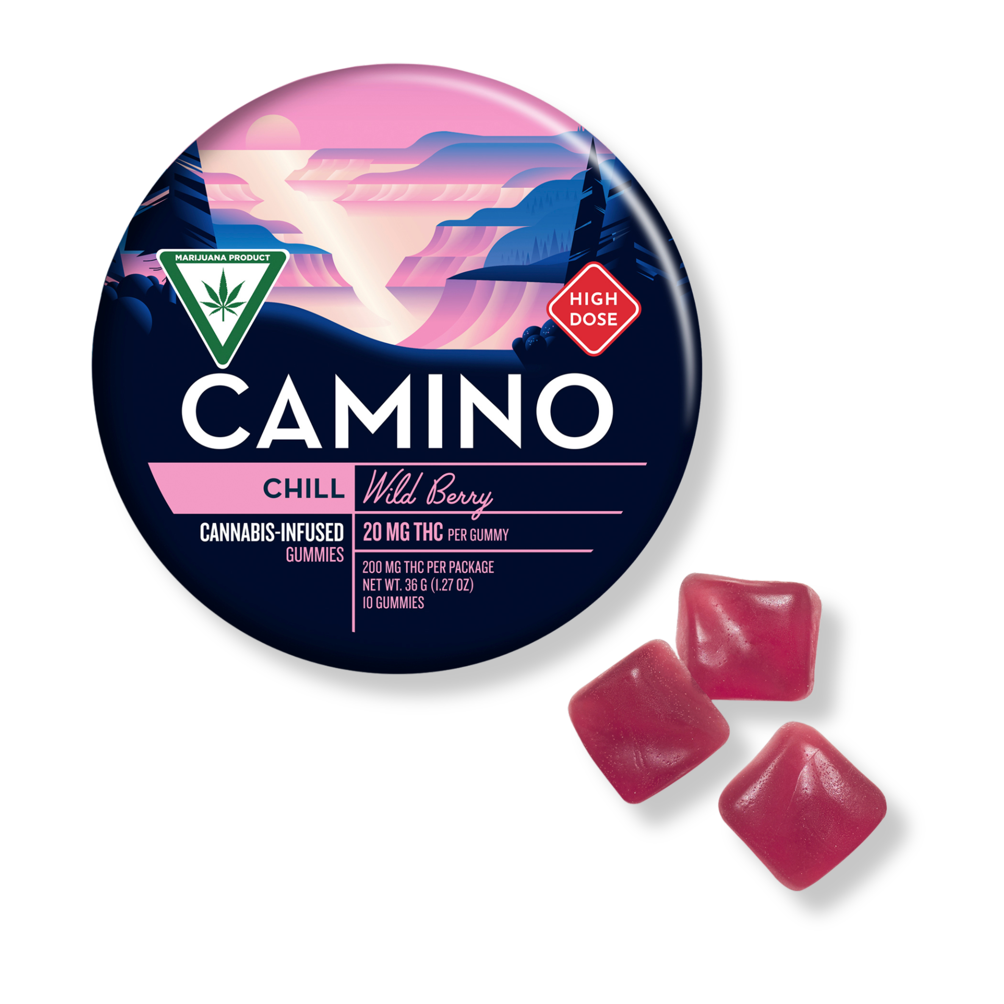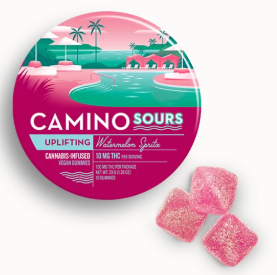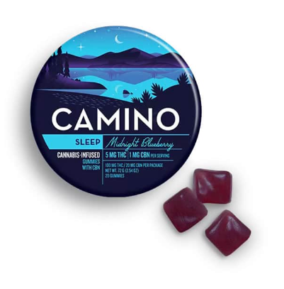 A few products consistently show up across the most locations. Camino Wild Berry 'Chill' Gummies [20pk] (57 stores), Camino Midnight Blueberry 5:1 'Sleep' Gummies [20pk] (51 stores), and Camino Sours 'Chill' Strawberry Sunset Gummies [10pk] (48 stores).