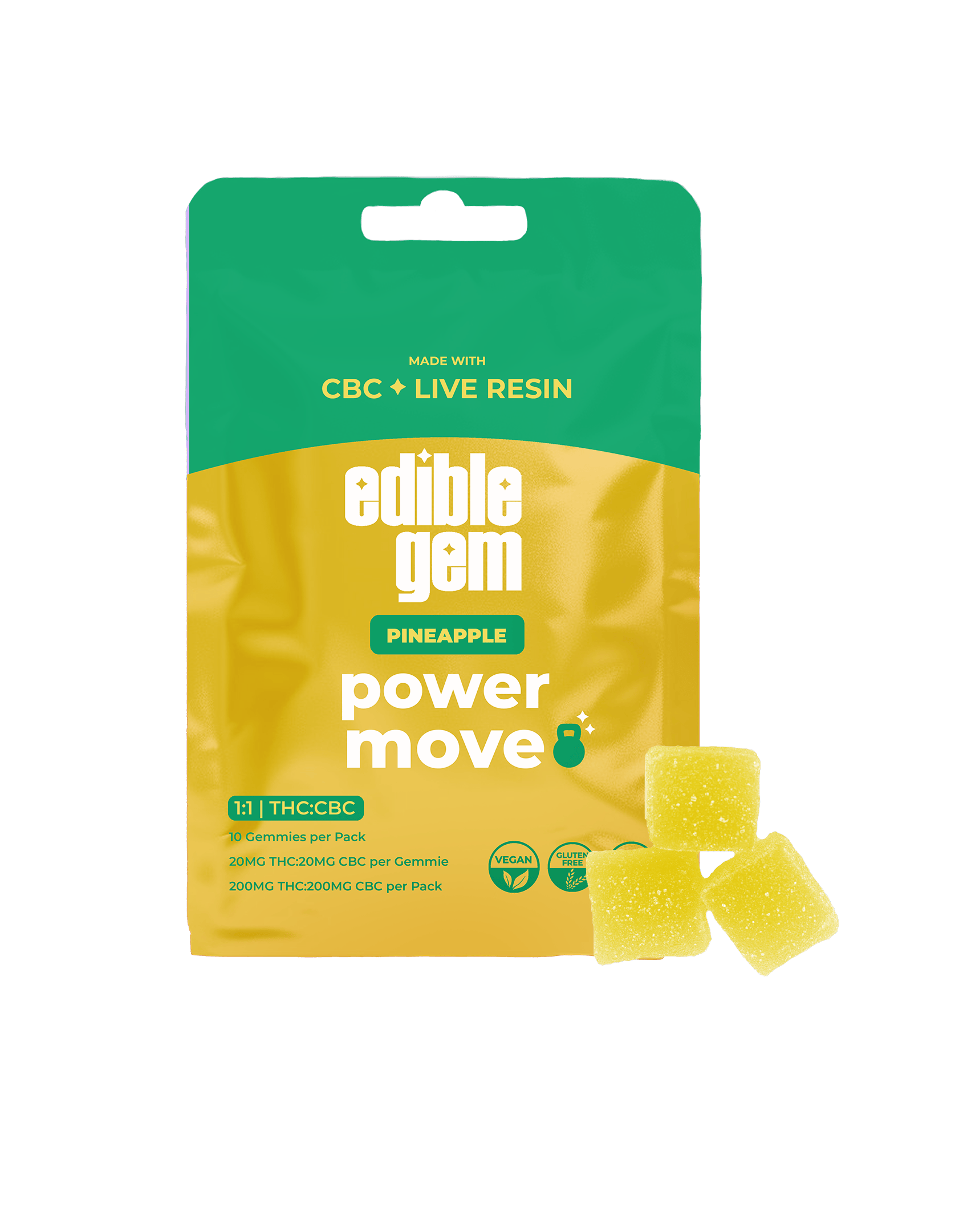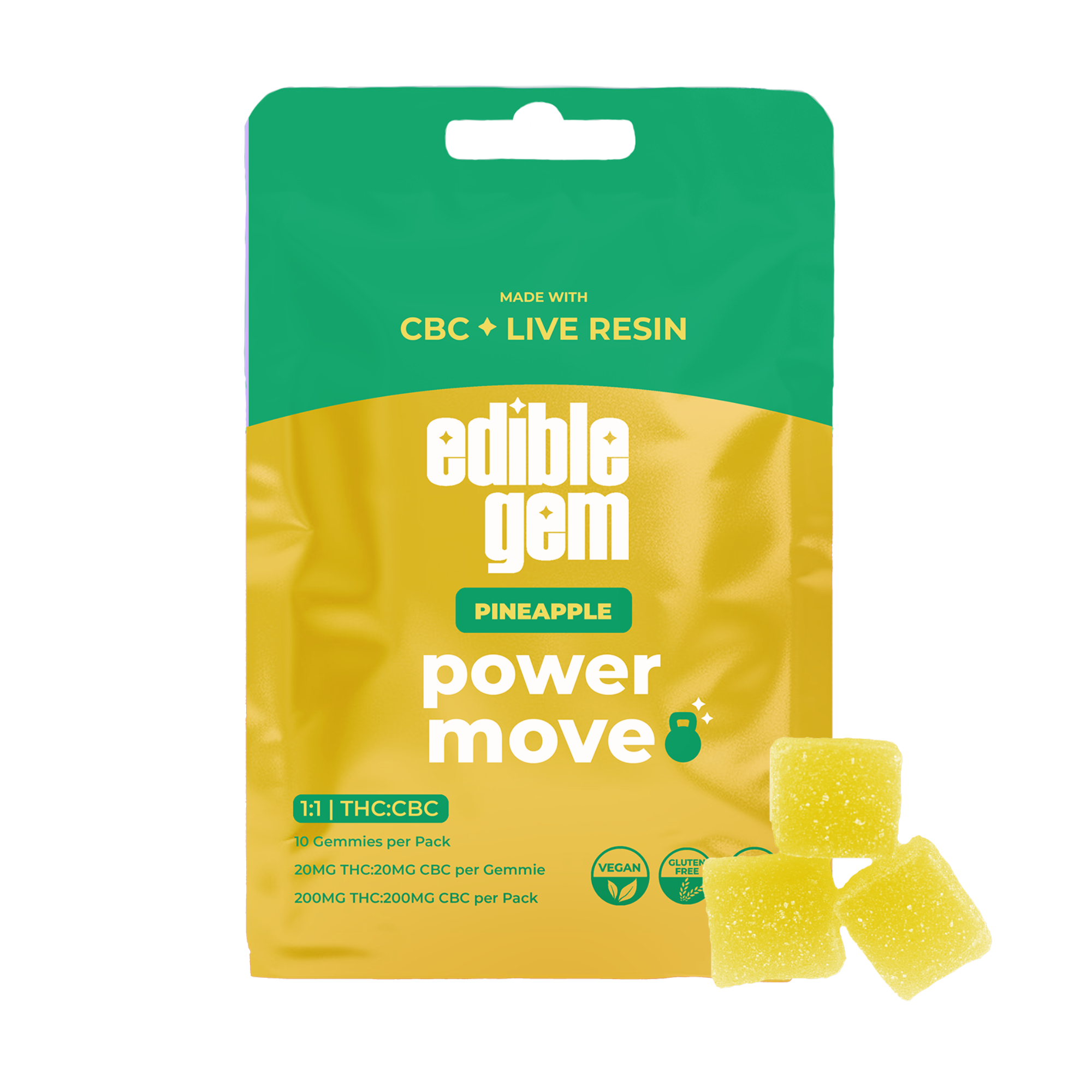 Edible Gem - Gummies - 200mg Live Resin 1:1 THC/CBC - Pineapple - Power Move Sativa