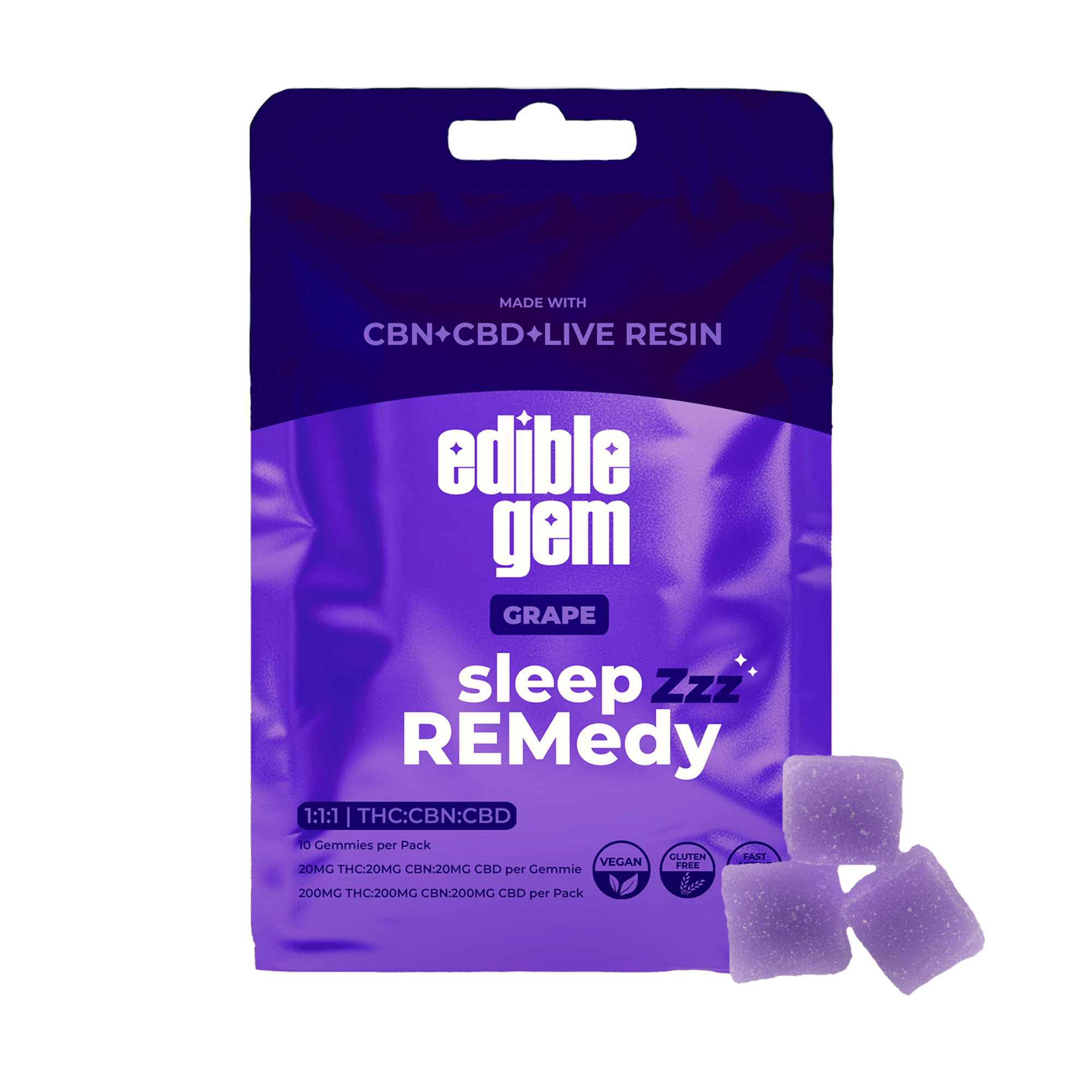Edible Gem | Grape Sleep REMedy Live Resin Gummies | 1:1:1 THC:CBD:CBN | 200mg