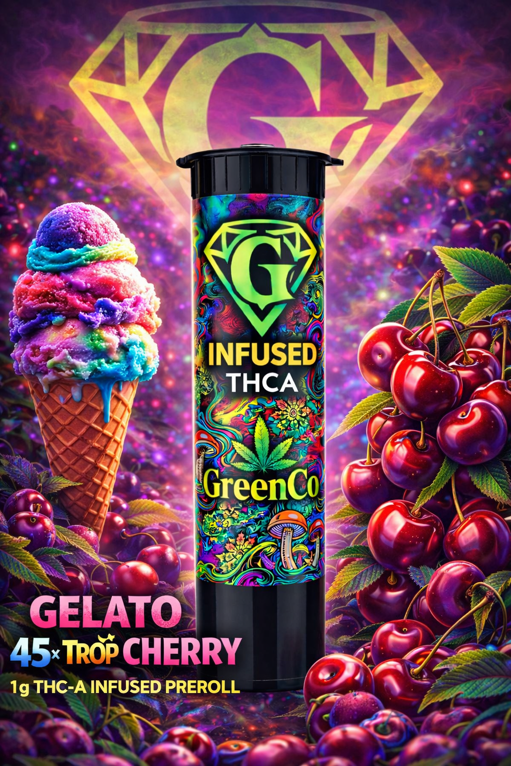 GreenCo | (10G) 10Pack 1g Infused Pre Roll | Gelato 45 x Trop Cherry