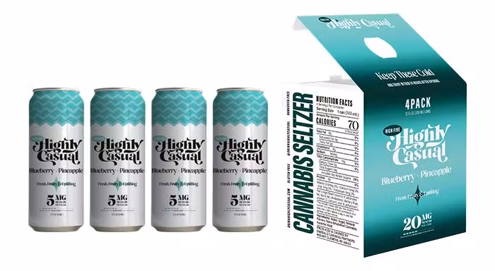 Infused Beverage | Highly Casual | Seltzer 5mg | Blueberry + Pineapple - THC:CBD