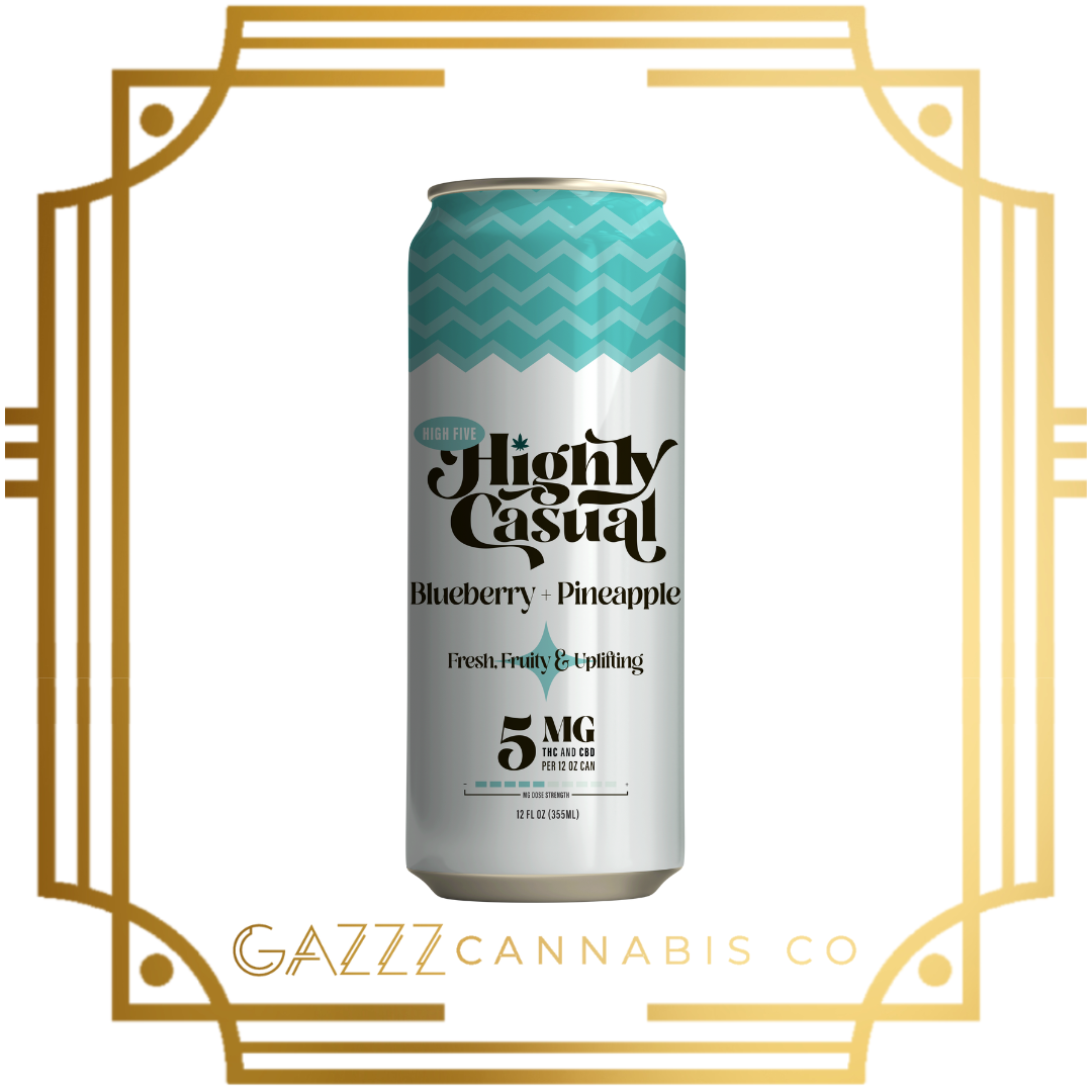 Highly Casual | Hang Five | Blueberry + Pineapple | 5mg Seltzer 1:1 THC:CBD