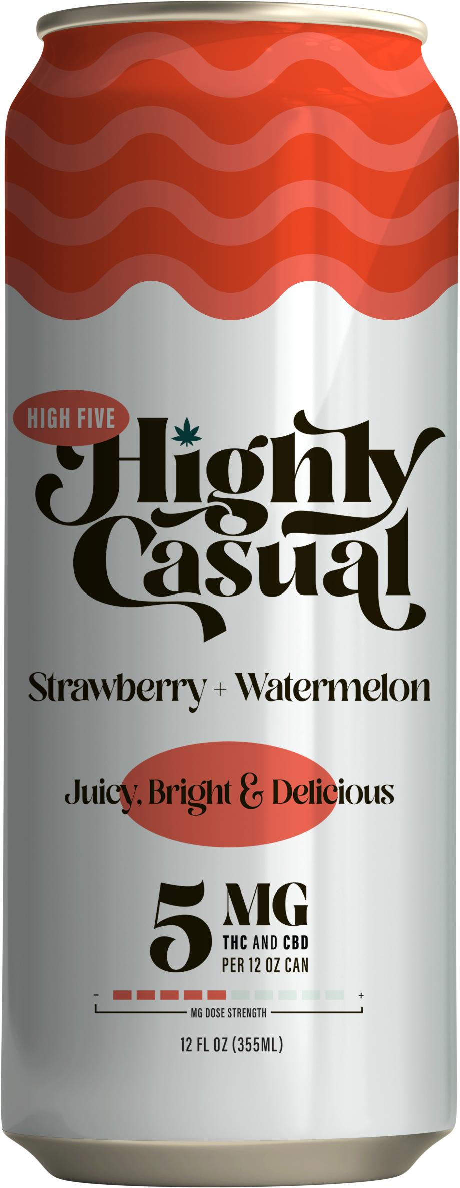 Highly Casual | High Five Strawberry Watermelon | 5mg THC / 5mg CBD Seltzer