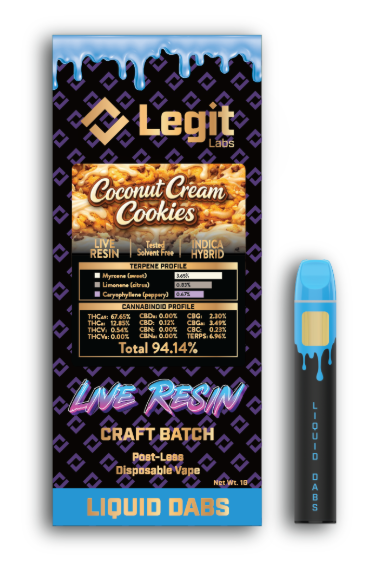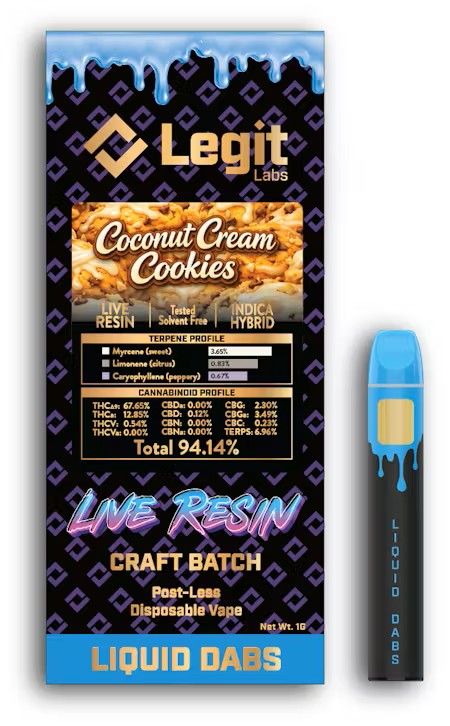 Live Resin Disposable Vape l Coconut Cream Cookies l Indica-Hybrid l Legit Labs