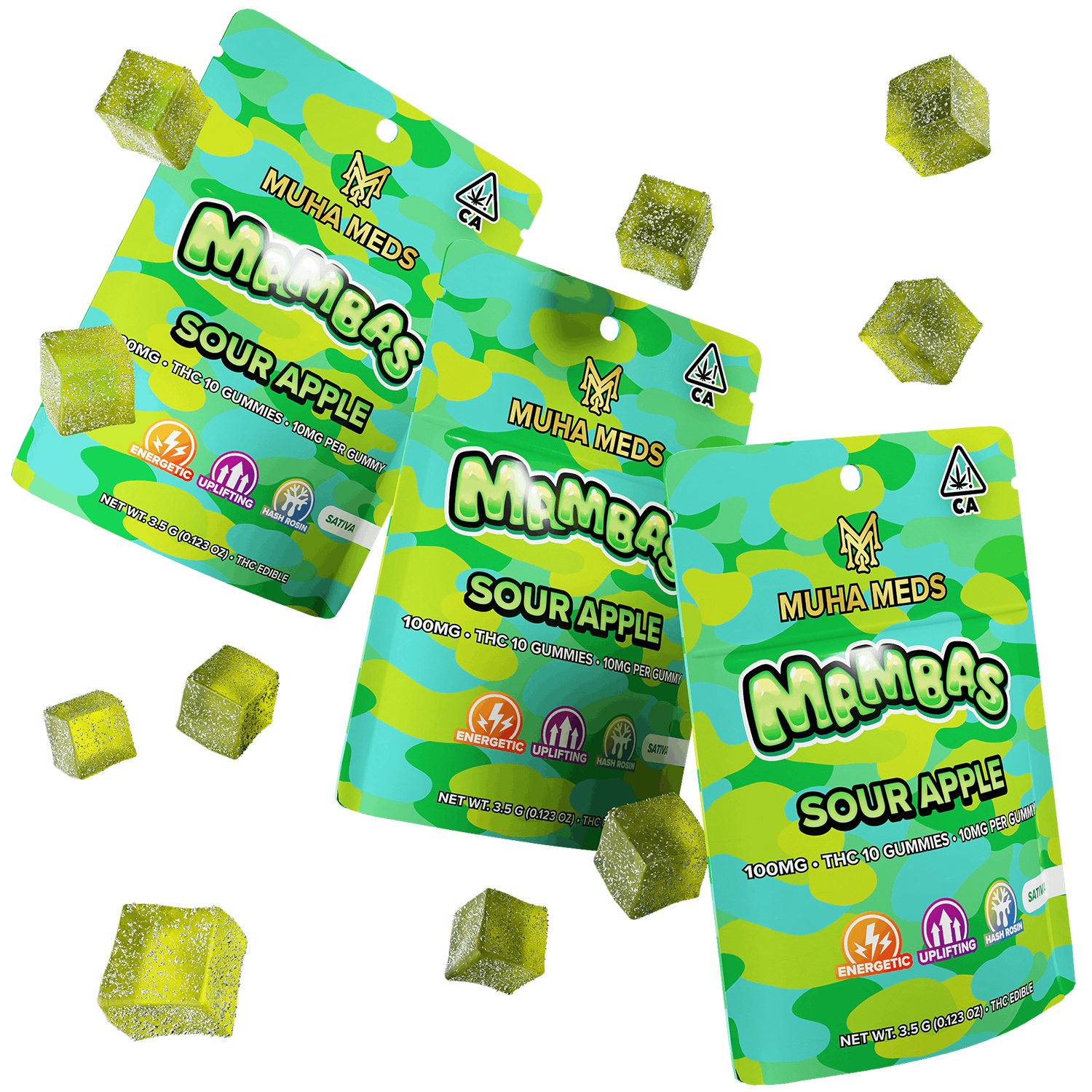 AU Mambas: Green Apple 200MG Hash Rosin Gummies