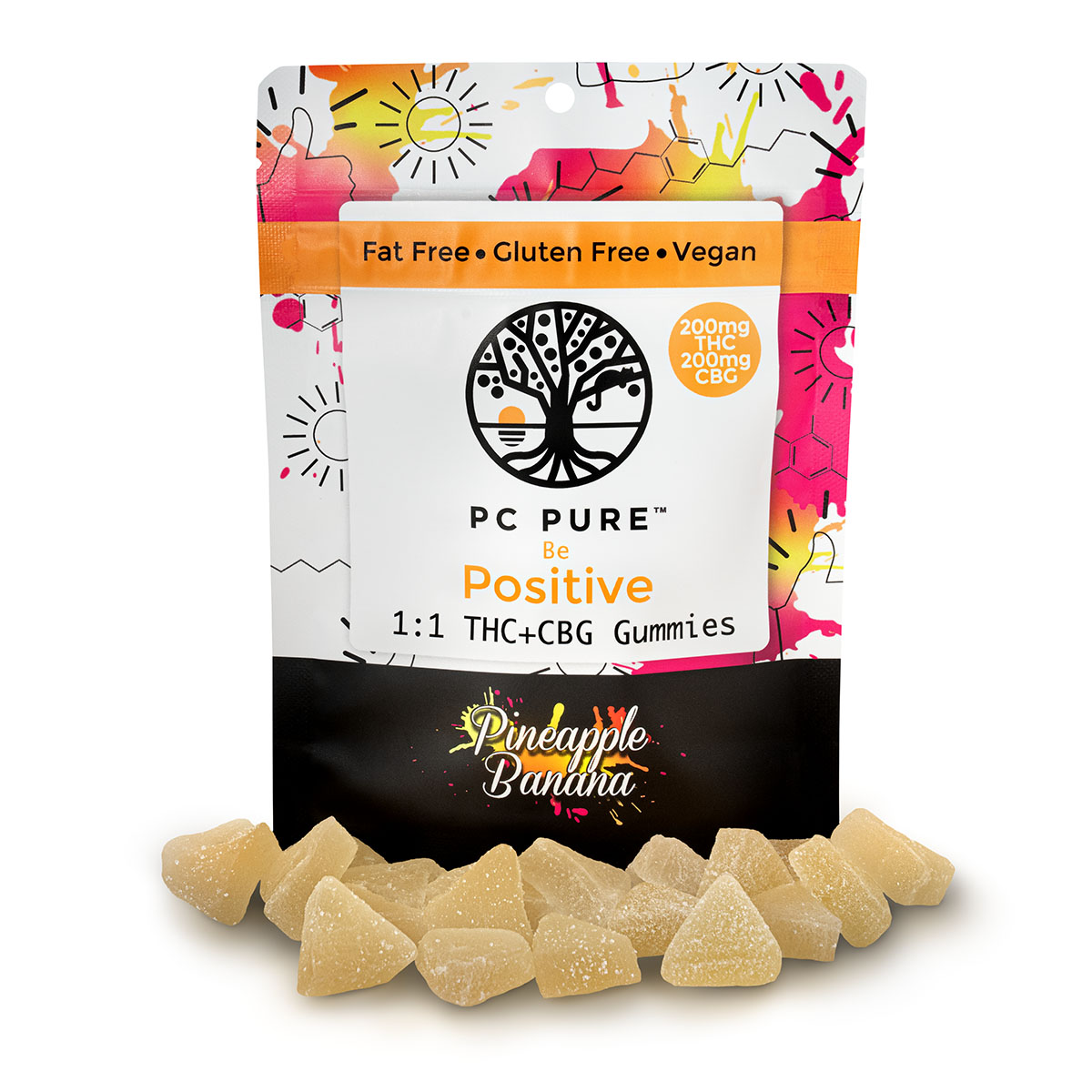PC PURE | Pineapple Banana THC:CBG Gummies | 200mg/10pc