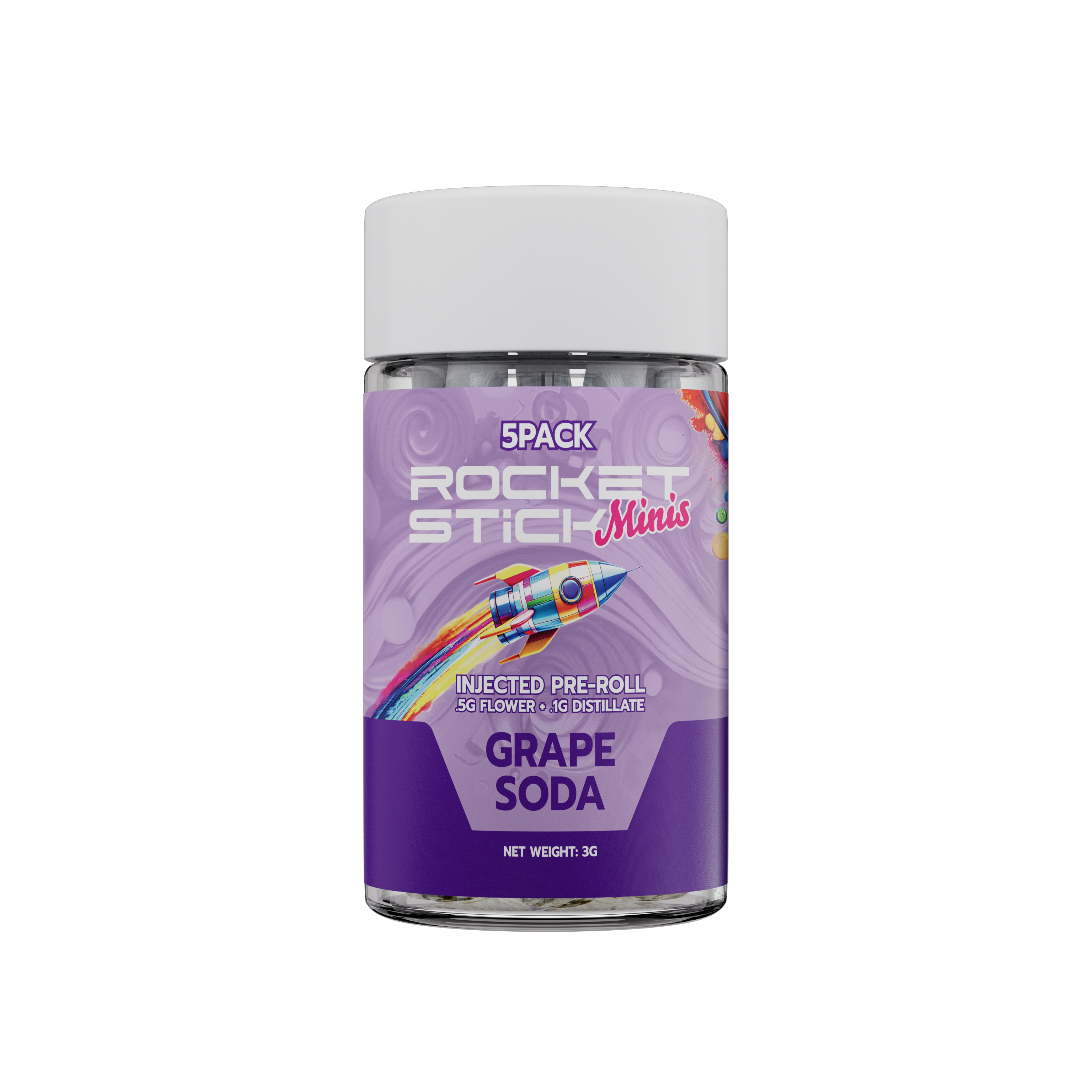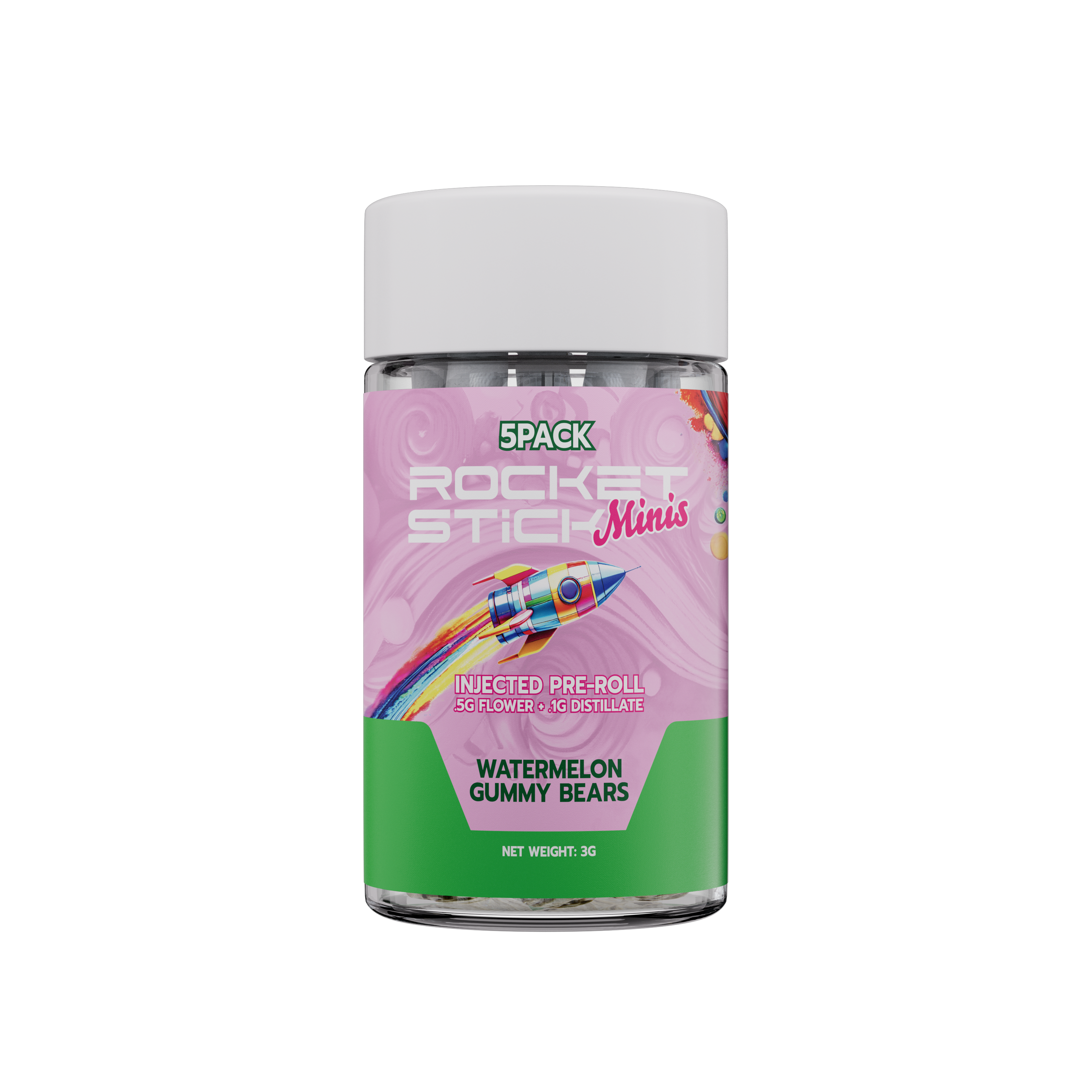 Rocket Stick Minis | Watermelon Gummy Bears | 5pk/.6G Distillate/Terp Infused Pre-Roll
