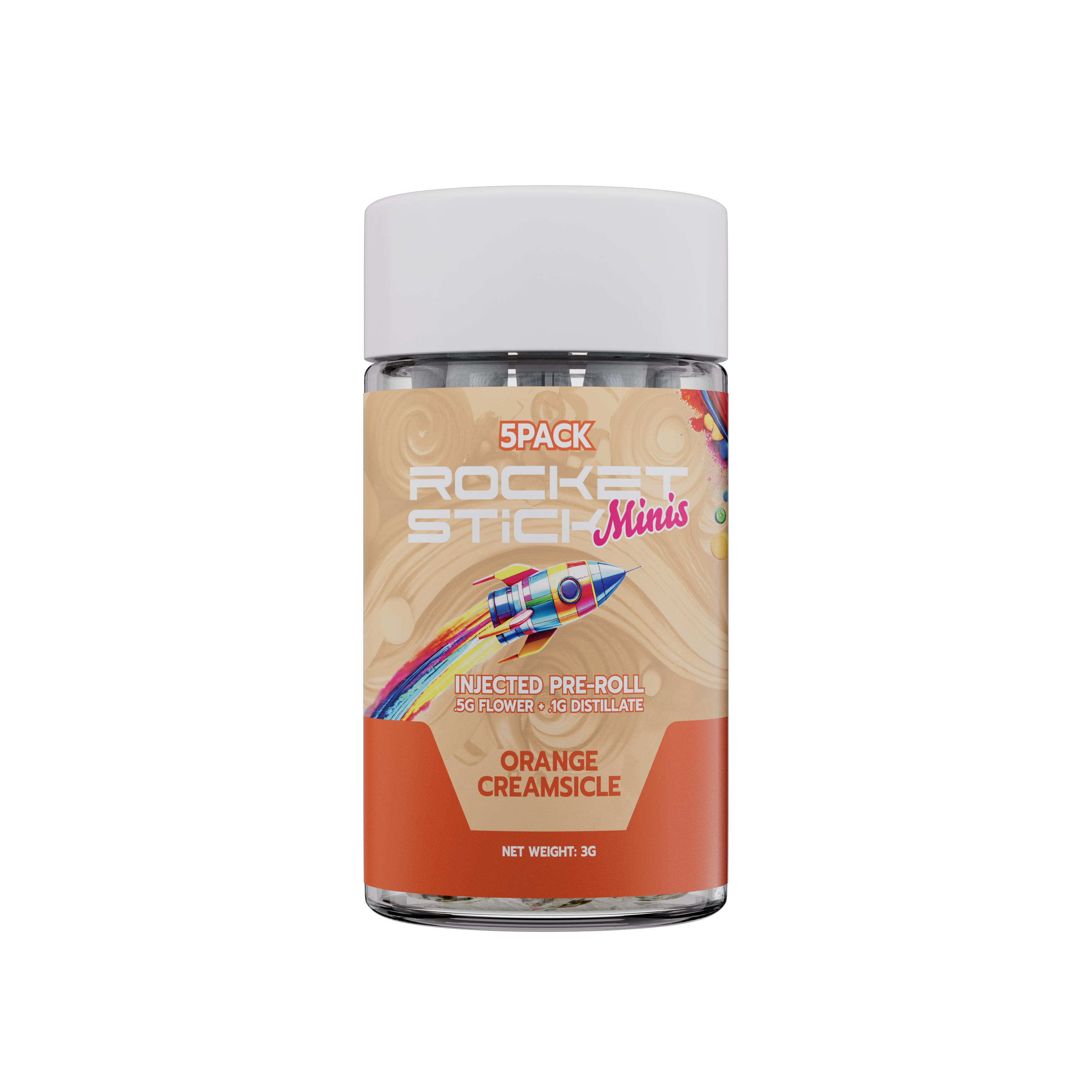 Rocket Stick Minis | Orange Creamsicle | 5pk/.6G Distillate/Terp Infused Pre-Roll