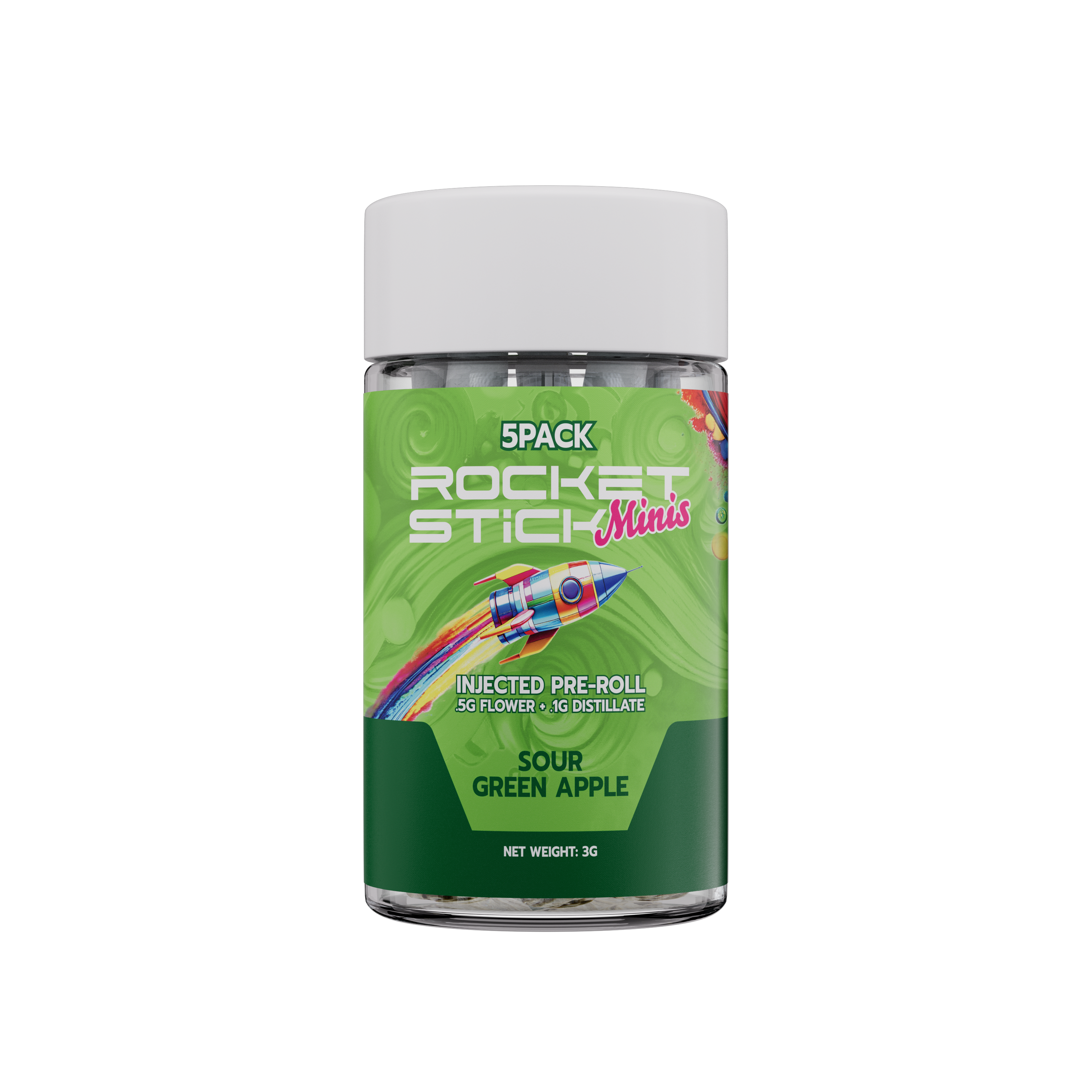 Rocket Stick Minis | Sour Green Apple | 5pk/.6G Distillate/Terp Infused Pre-Roll